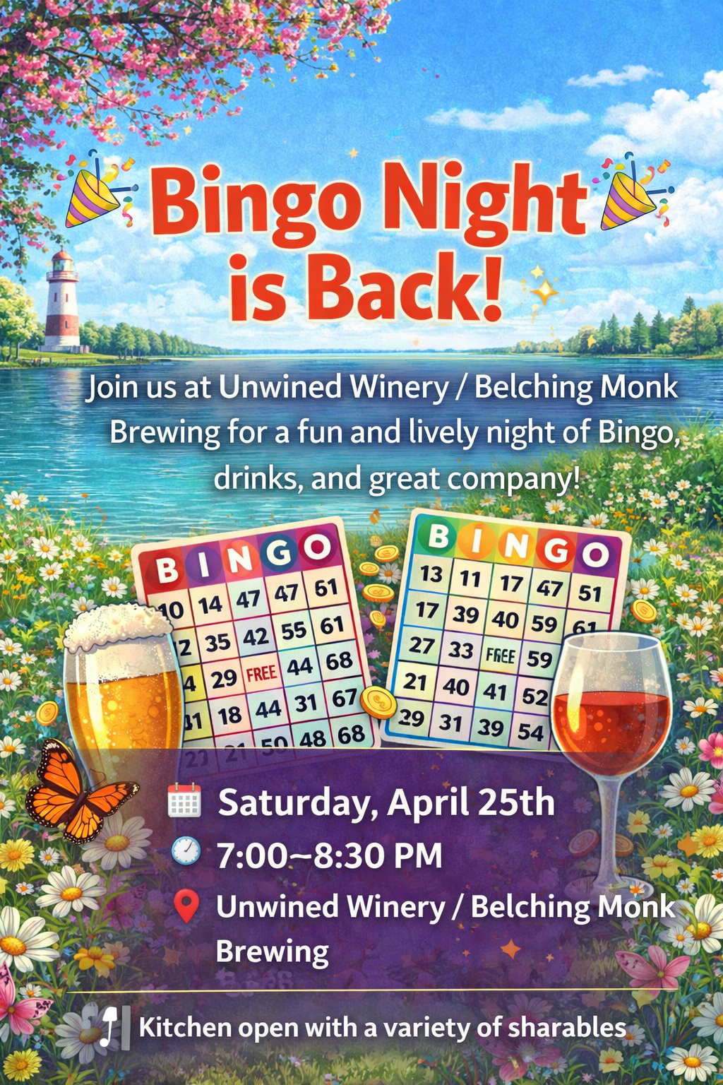 Join us at Unwined Winery / Belching Monk Brewing for a fun and lively night of Bingo, drinks, and great company!