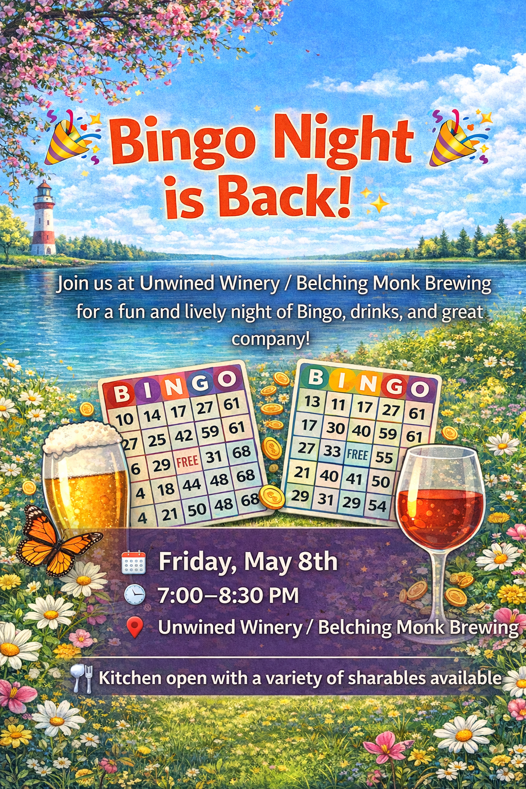 Join us at Unwined Winery / Belching Monk Brewing for a fun and lively night of Bingo, drinks, and great company!