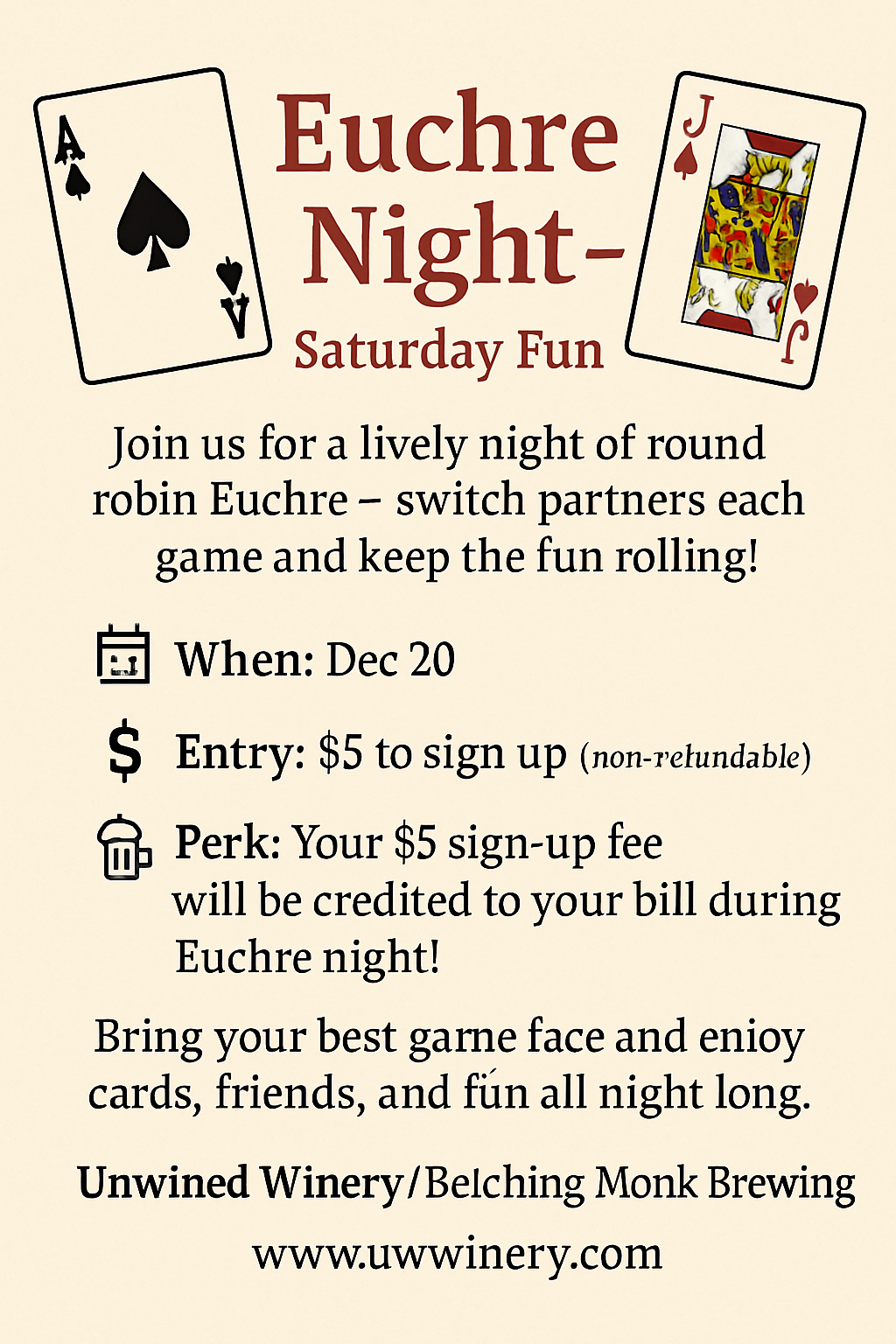 🎉 Euchre Night – Saturday Fun! 🎉