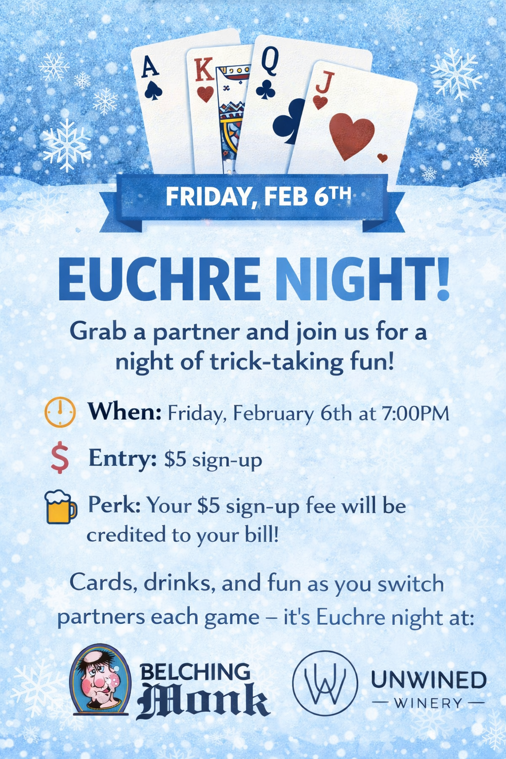 🍻 Perk: Your $5 sign-up fee will be credited to your bill during Euchre night!