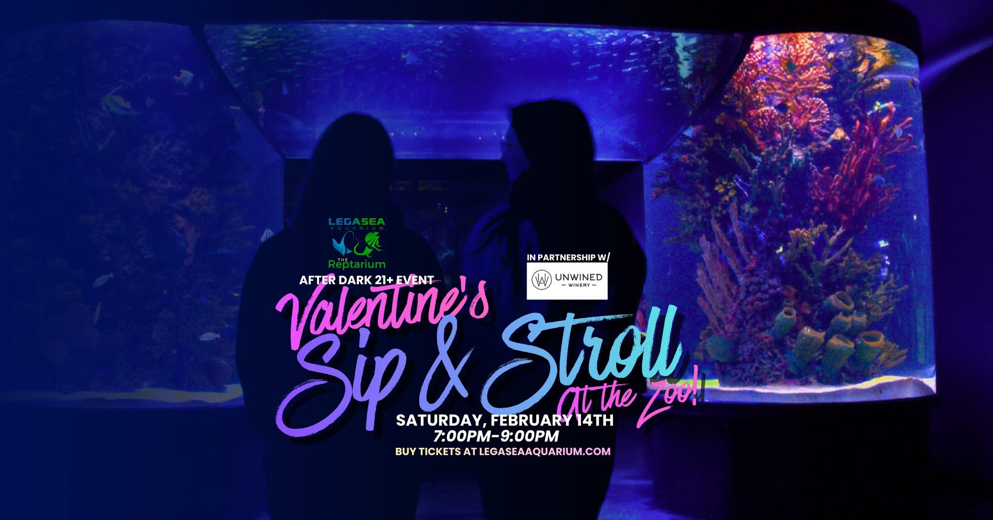 Come join us at LegaSea Aquarium for a unique and romantic Valentine’s Sip & Stroll experience!