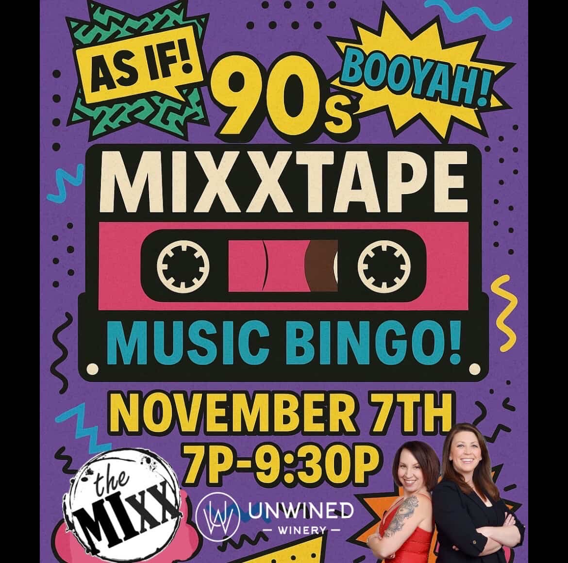 ๐ค The Mixx will be performing live covers of songs from the 90’s, you know the ones you had on your mix tape!!! Every tune becomes a square on your bingo card!