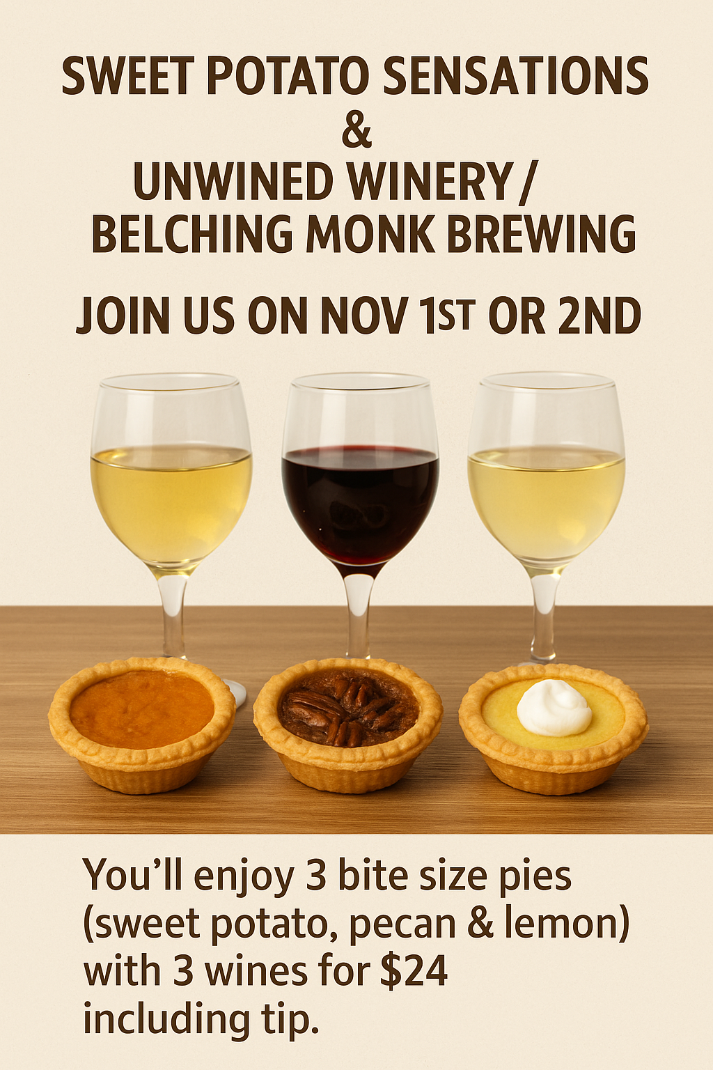 Hosted by Sweet Potato Sensations & Unwined Winery / Belching Monk Brewing