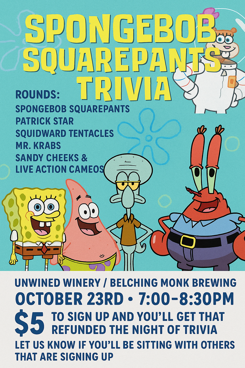 Get ready to dive under the sea for a night of laughs, memories, and trivia fun featuring everyoneβs favorite Bikini Bottom crew!